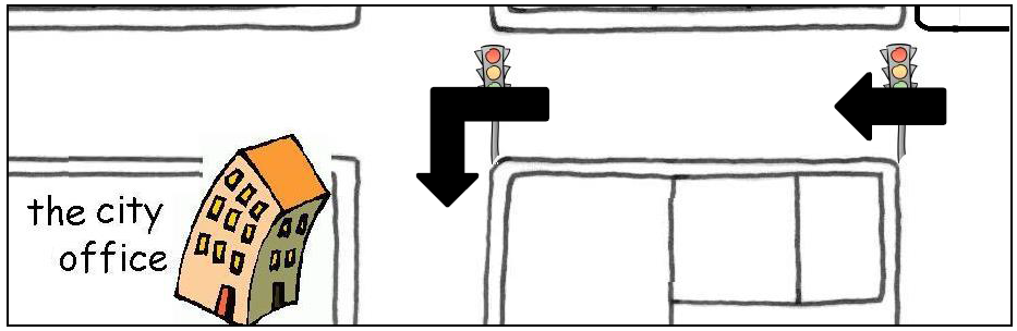 B: Ok. Go down this street. Turn left at that corner. It’s on the left.