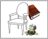 1. Is there a book behind the chair?